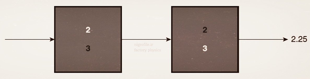 دربخش های قبلی در مورد نیاز به حضور بافرها در کنار نوسانات صحبت کردیم. رفتار طبیعی عملیات تولید به گونه ای است که در صورت وجود ظرفیت اضافی، زمان انتظار نباید طولانی باشد. فرض کنید که سیستم نشان داده شده در شکل (۱) تقاضای یک واحد (قطعه) در ساعت دارد (به یاد داشته باشید که ظرفیت ۲.۵ واحد در دقیقه است).