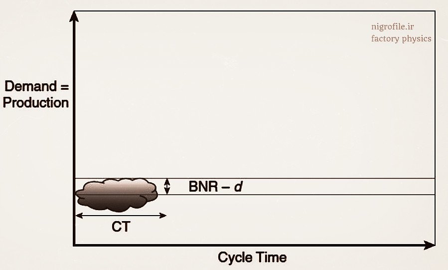 اگر مقدار نوسان ظرفیت ثابت بماند، مساحتی که با V × T نشان داده شده است باید برابر با CT (BNR – d) باشد. این یک روش شهودی برای تخمین زمان سیکل تولید (CT) ارائه می دهد: