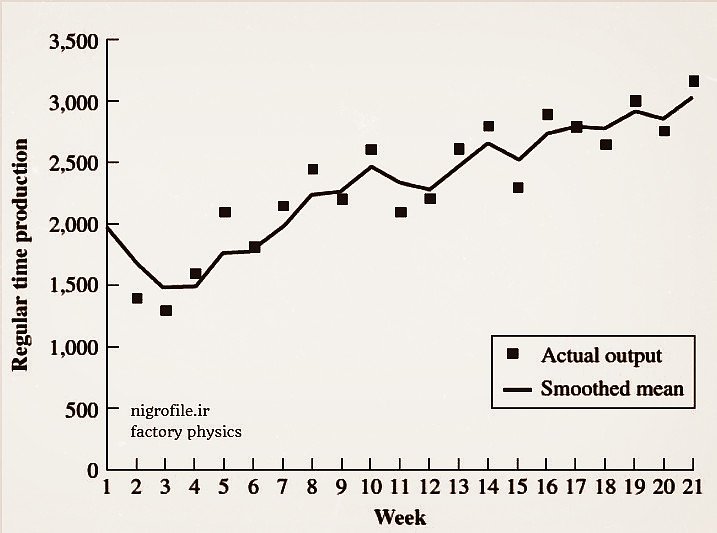 اکثر شرکت ها در پایان دوره برنامه ریزی خود (معمولاً هفتگی یا ماهانه)، میزان انحراف از تولید، یعنی اختلاف بین آنچه که باید تولید می کردیم و آنچه در عمل تولید شده است را ثبت می کنند. اگر داده های مربوط به مقادیر انحراف از تولید را در قالب یک سری زمانی ترسیم کنیم و مشاهده کنیم که نمودار صعودی است این یعنی وضعیت تولید چندان مناسب نیست.