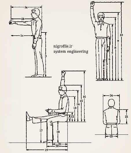 شکل ۱- وضعیت استاندارد اندازه گیری داده های آنتروپومتری (بخش اول)
