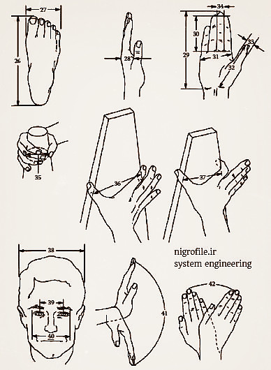 ۲- ابعاد بدن و فیزیک مربوط به استفاده از این محصول مشخص شود (برای مثال ابعاد فیزیکی دست و حرکت مچ برای طراحی موبایل مورد توجه قرار می گیرد).