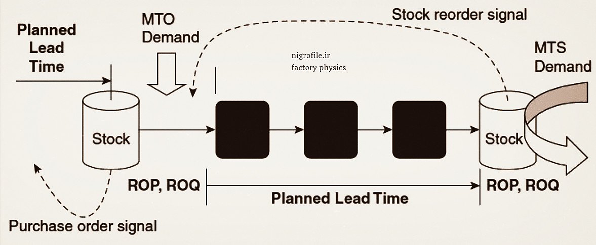 همانطور که در شکل (۱) نشان داده شده است، تئوری فیزیک کارخانه (همون تئوری برنامه ریزی تولید) یک شرکت را قادر می سازد تا اقدامات عملیاتی مختلف را برای دستیابی به اهداف تجاری همگام و همسو نماید. و حتی بتوانیم متناسب با نیاز کسب و کار خودمان طراحی کنیم. شکل (۲) را قبلاً تحت عنوان مدل تقاضا- تولید و انبار (DSP) معرفی کردیم اما برای اینکه دوباره ذهنمان تازه شود که قرار است در کجای سازمان اقدام داشته باشیم، نگاه دوباره به آن مفید است.