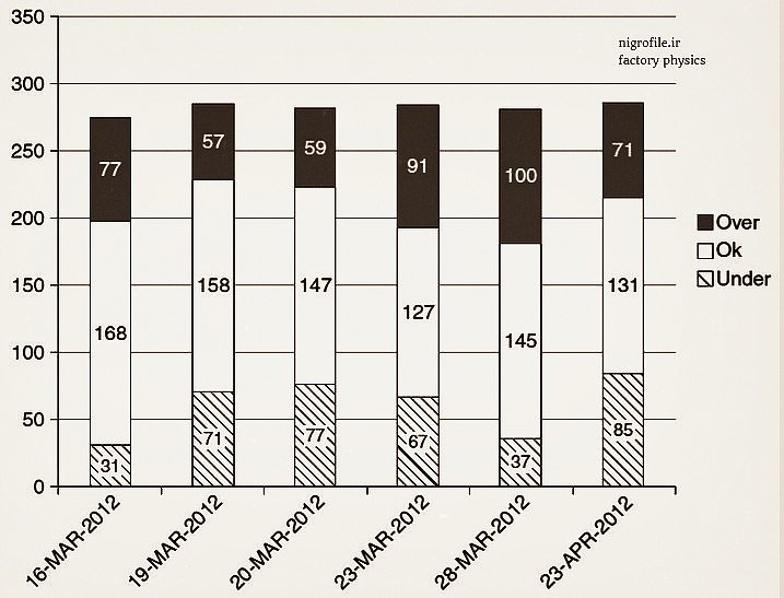 د) اگر نشانگرهای سیستم خارج از محدوده کنترل هستند، فوری کماندویی واکنش نشون ندید بلکه در درجه اول دنبال دلیل آن باشید. اغلب دلایل قانع کننده ای برای خارج از کنترل بودن نشانگرهای سیستم وجود دارد. به عنوان مثال، ممکن است به دلیل لغو یک یا چند سفارش موجودی زیادی در انبار داشته باشیم. به طور کلی نسبت به کاهش موجودی خارج از محدوده حساسیت بیشتری داشته باشید زیرا خدمت به مشتری آسیب می بیند.