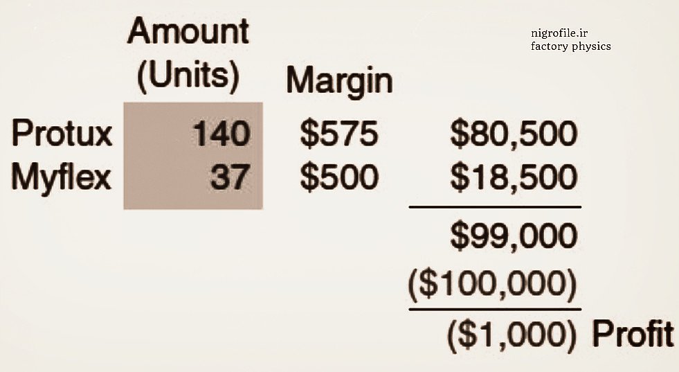 در بخش مربوط به برنامه ریزی ظرفیت به اثر نرخ تولید در گلوگاه بر توان و ظرفیت خط تولید اشاره شد. برای به دست آوردن بیشترین سود از یک جریان تولیدی، باید محصولاتی تولید کرد که بیشترین سود را در گلوگاه دارند. برای مثال، فرض کنید که تعدادی اسکناس های ۵۰۰۰، ۱۰۰۰۰ و تراول ۵۰ هزار تومانی روی یک میز در ردیف های جداگانه گذاشته شده است که ارتفاع و تعداد همه اسکناس ها هم یکسان است. به اولین نفری که به سمت میز می رود گفته می شود که در مدت زمان پنج ثانیه وقت دارد تا هر چی میتونه از روی میز پول بردارد (البته جارو نمیتونه بکنه).