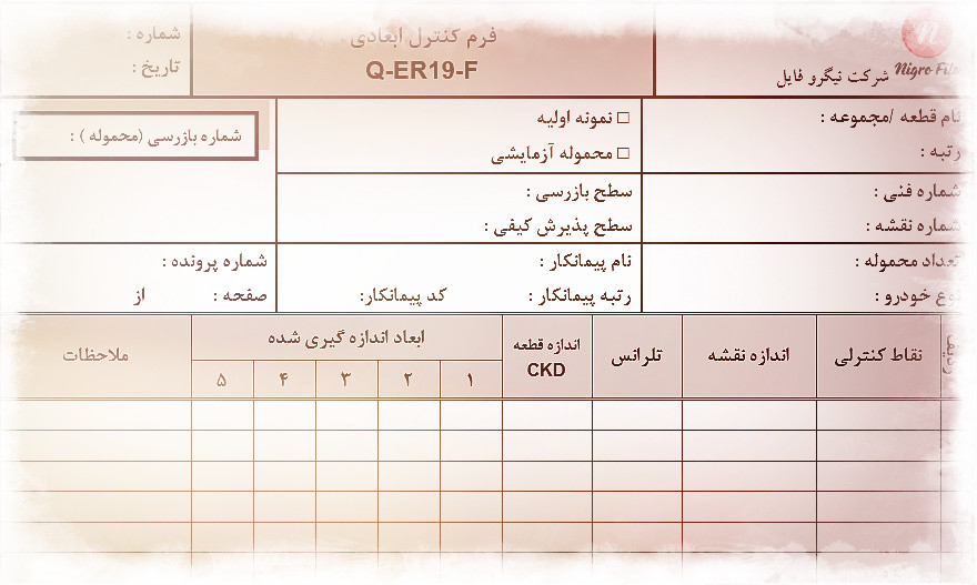 • نمونه فرم كنترل ابعادي