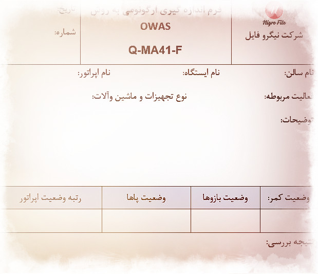نمونه فرم اندازه گیری ارگونومی به روش OWAS