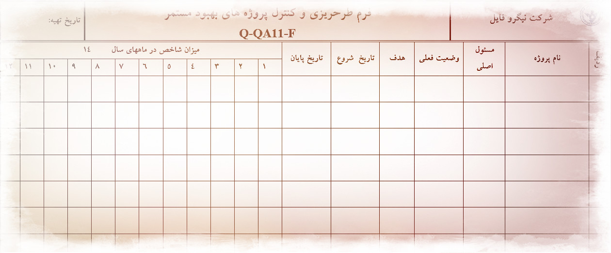 • نمونه فرم طرحريزی و کنترل پروژه های بهبود مستمر