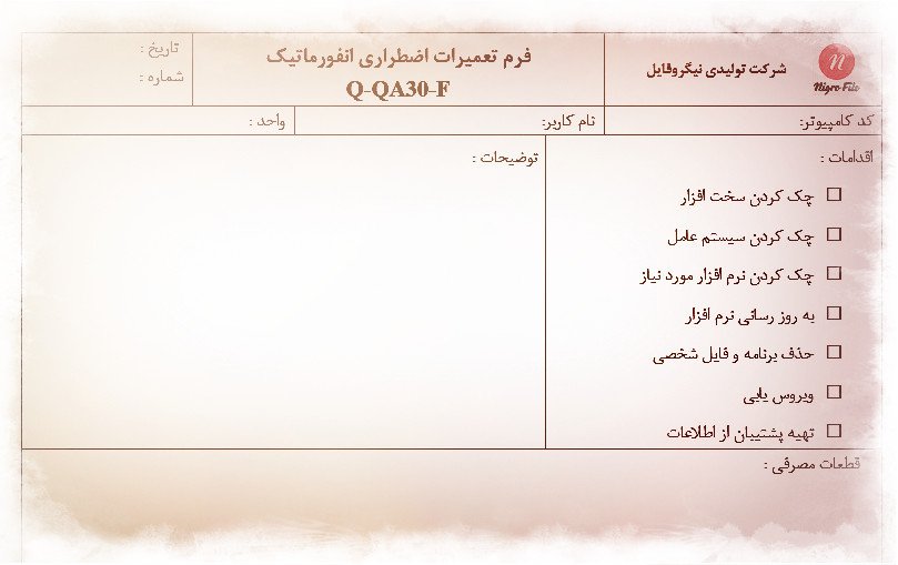• نمونه فرم تعمیرات اضطراری انفورماتیک