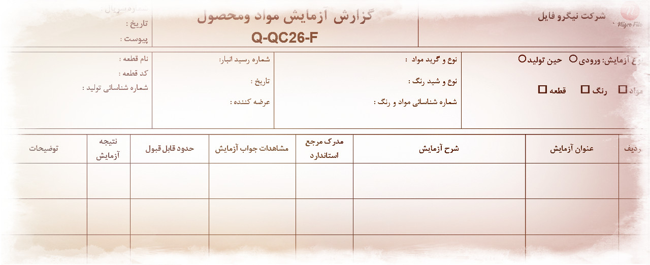 فرم نتایج آزمایش وزن قطعات