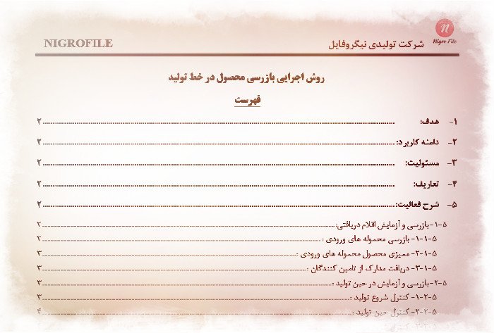 و فرم نتایج بازرسی حین فرآیند رنگ است. لازم به ذکر است که تعداد ۱۴ فرم به فرمت وورد است و ۲ فرم دیگر در قالب اکسل طراحی شده اند.