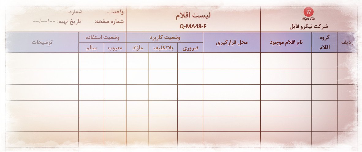 نمونه فـرم لیست اقلام