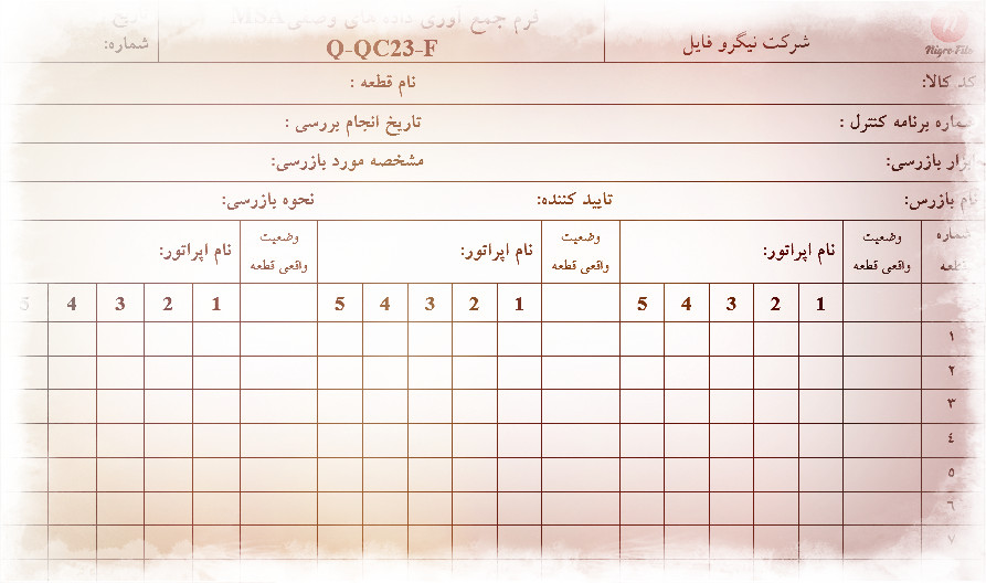 • نمونه فرم جمع آوري داده هاي وصفي MSA