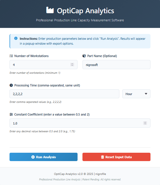 نسخه ابری نرم افزار محاسبه ظرفیت و زمان سیکل تولید OptiCap Analytics، روش ساده تر محاسبه ظرفیت خط تولید را مستقیماً به مرورگر شما میآورد. بدون دانلود یا نصب نرمافزار، می تواند از این پلتفرم به راحتی استفاده نمایید. توضیحات کلی در مورد رویکرد این نرم افزار در صفحه محصول نسخه دسکتاپ به تفصیل شرح داده شده است که می توانید اینجا مطالعه نمایید. در ادامه، نحوه دسترسی و تصاویری از محیط کاربری نرمافزار را مشاهده خواهید کرد.