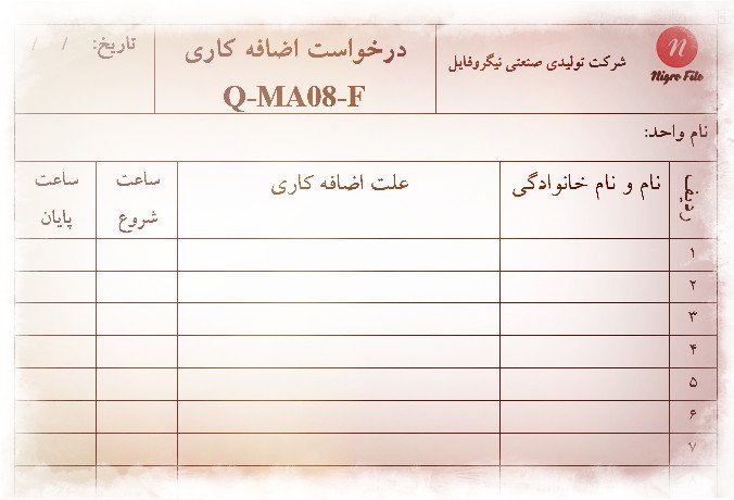 نمونه فرم درخواست اضافه کاری