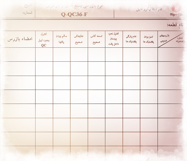• نمونه فرم بازرسی بسته بندی و بارگيری