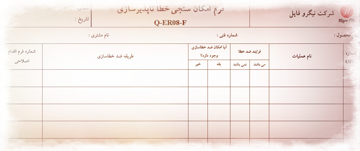 نمونه فرم امکان سنجی خطا ناپذیرسازی