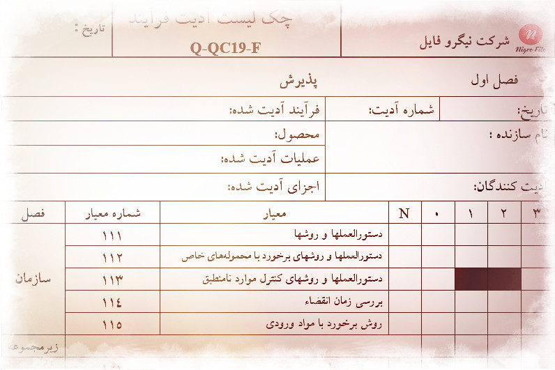 - نمونه چک ليست آديت فرآيند (انبارش، ساخت، کنترل و آزمایش، حمل و نقل، بسته بندی و ارسال)
