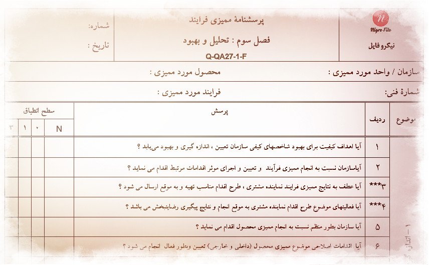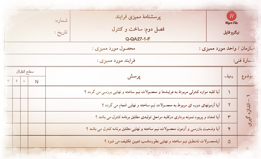 - نمونه فرم نمونه پرسشنامه ممیزی فرآیند