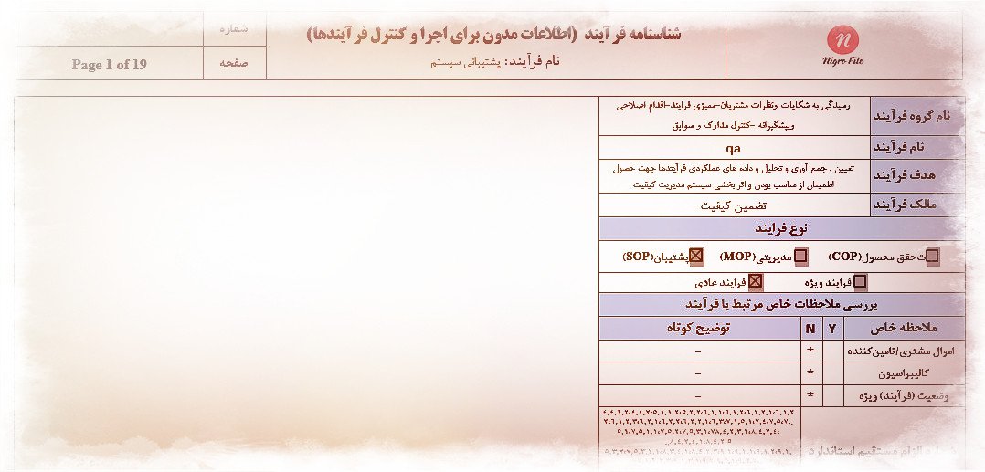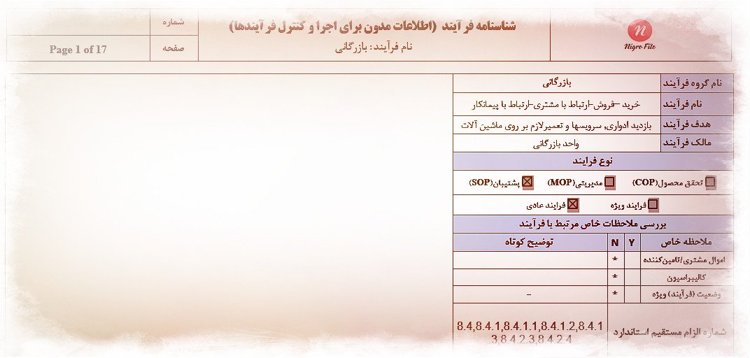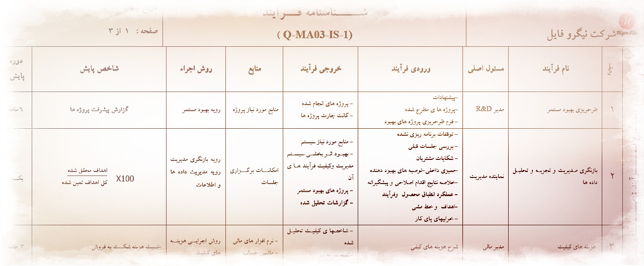 ۳- نمونه شناسنامه فرآیند برای بازرگانی