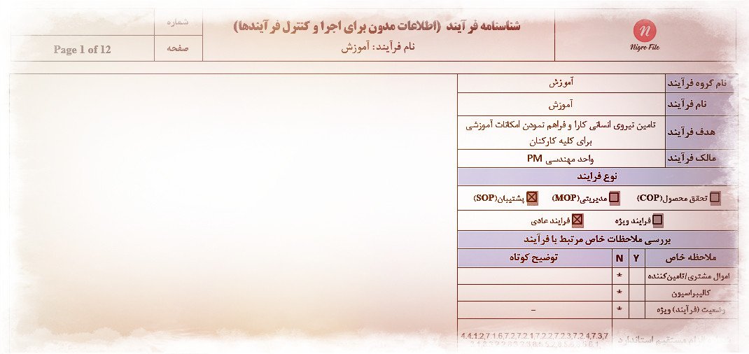 ۹- نمونه شناسنامه فرآیند برای آموزش