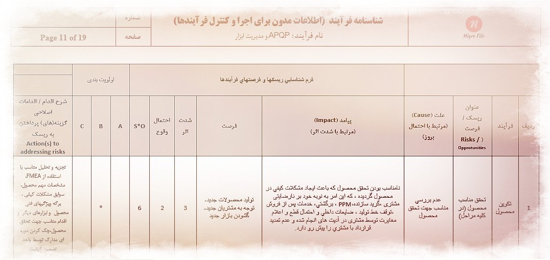 – شناسایی ریسکها و فرصتهای فرآیند.
