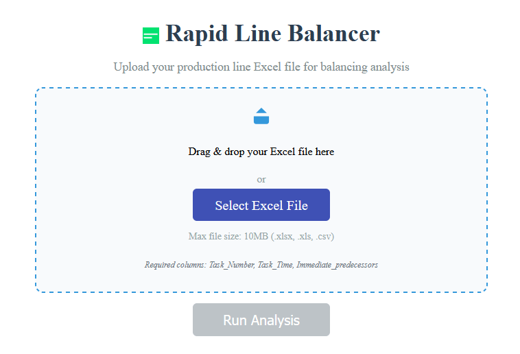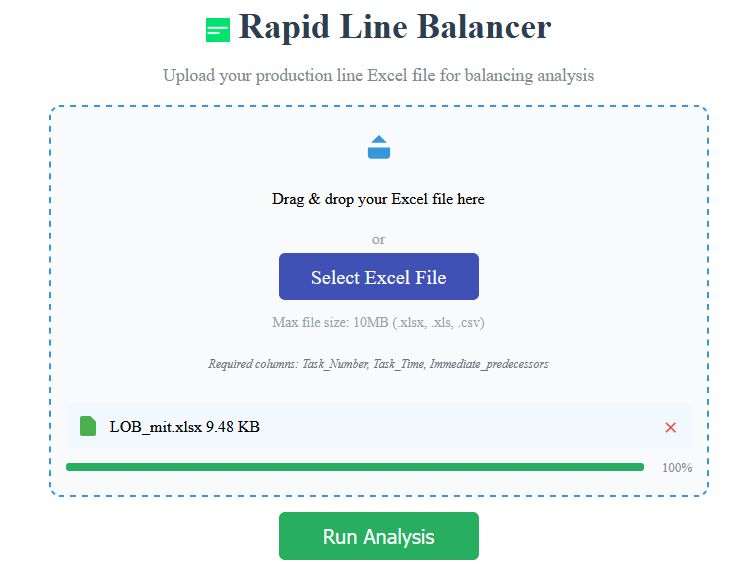 نسخه آنلاین Rapid Line balancing برای پروژههای چابک و سریع طراحی شده است. این نسخه در حال حاضر بهطور بهینه از فایلهای اکسل شامل داده های کمتر از ۱۰۰ فعالیت (Task) به خوبی پشتیبانی میکند و خروجی گرافیکی روابط بین فعالیت ها، همچنان به عنوان یک ویژگی پیشرفته، مختص نسخه دسکتاپ میباشد. با این حال، تمامی دادههای عددی و محاسباتی با بالاترین دقت و کیفیت در نسخه آنلاین در اختیار شما قرار میگیرد.