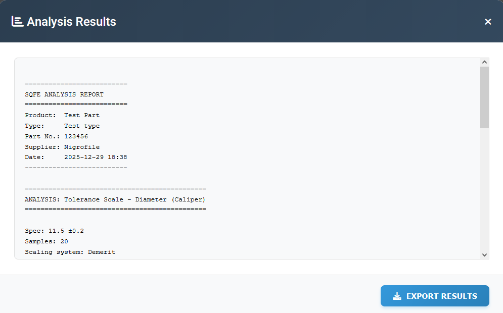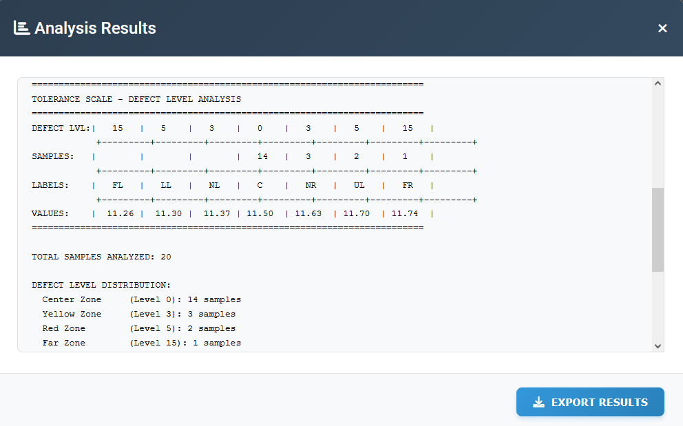 سطرمربوط به value نیز همان مقیاس نمونه ها است. توجه داشته باشید که در این نرم افزار مقیاس ها تا دو رقم اعشار و بدون گرد کردن محاسبه می شود چراکه در تلرانس های نزدیک، گرد کردن باعث خطای محاسباتی می شود. در آخر گزارش هم یک جدول خلاصه نتایج است که با هم مرور می کنیم.